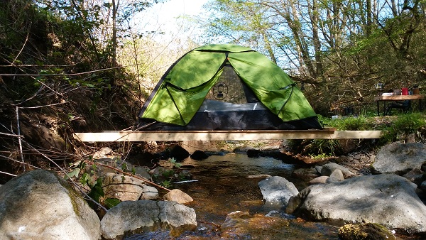 そこで敷地に流れている小川を利用して 川の上にテントを張って非日常を演出しよう